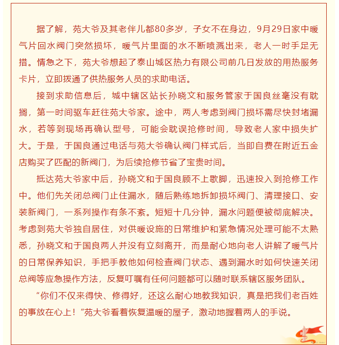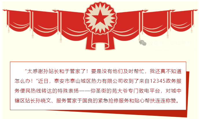 泰山城區(qū)熱力有限公司工作人員緊急搶修解民憂,獲市民點贊