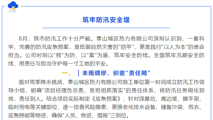 泰山城區(qū)熱力有限公司筑牢防汛“安全堤”用責(zé)任守護(hù)工程平安
