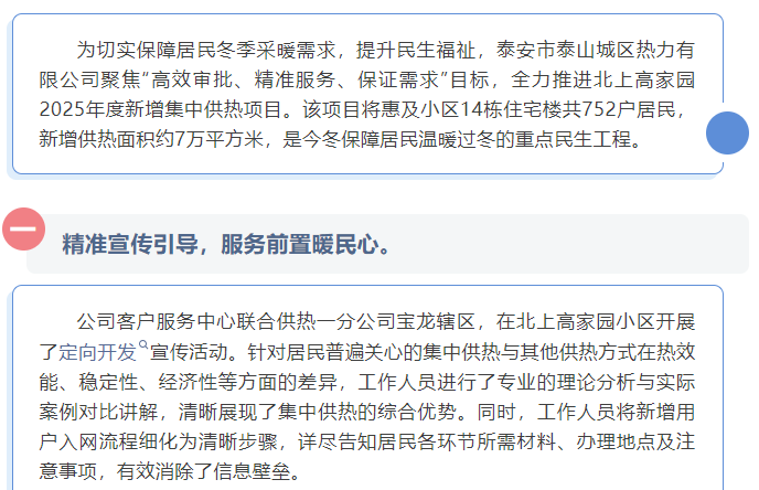 【服務前置】泰山城區(qū)熱力有限公司客戶服務中心高效推進北上高家園新增用熱項目