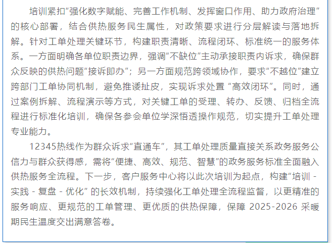 錨定民生溫度 提升政務(wù)效能—— 客服中心以專題培訓(xùn)筑牢采暖期供熱服務(wù)基石