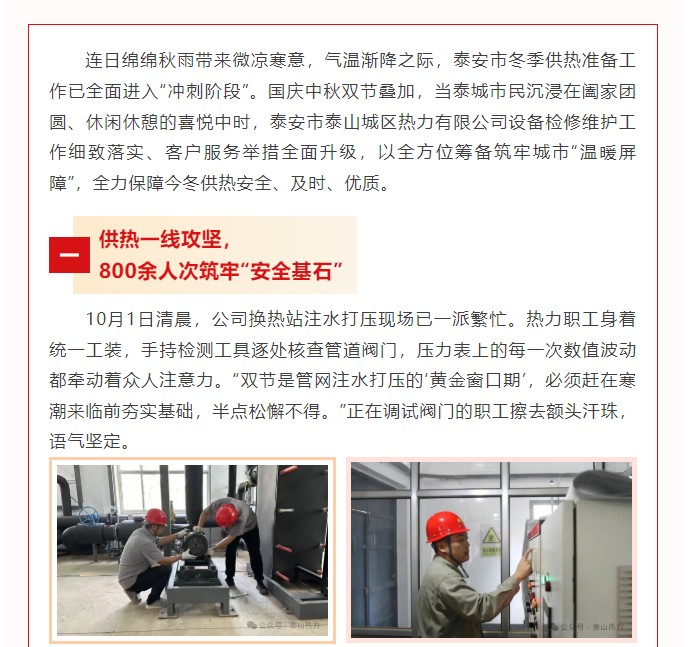 秋雨添涼“暖意先” 泰山城區(qū)熱力有限公司全力備戰(zhàn)今冬供暖季