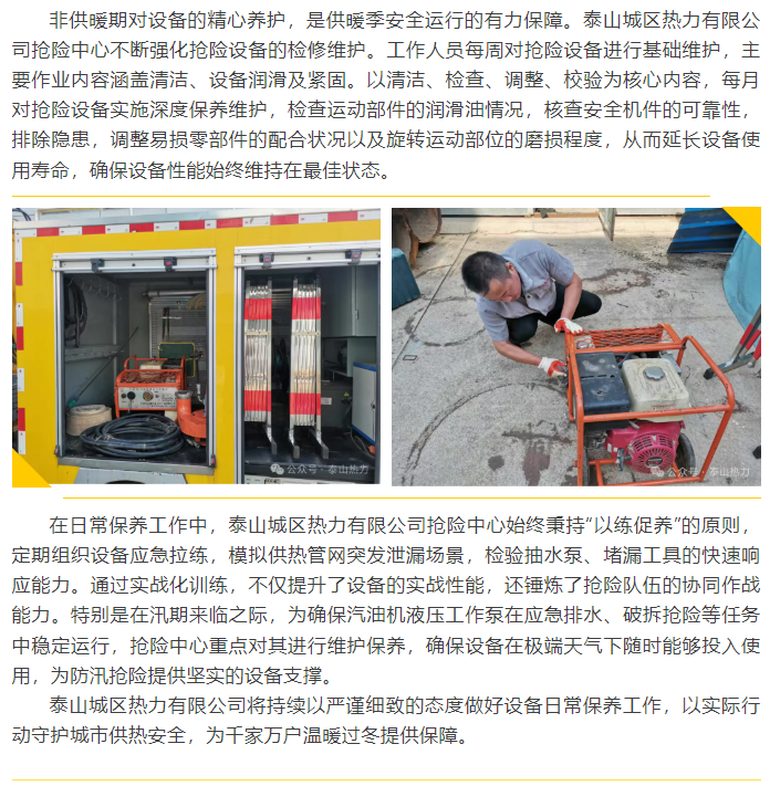 泰山城區(qū)熱力有限公司搶險(xiǎn)中心非供暖期搶險(xiǎn)設(shè)備日常保養(yǎng)紀(jì)實(shí)